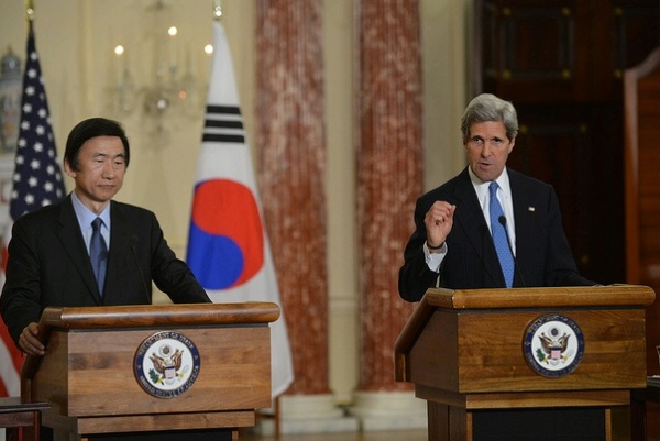 Secretary of State John Kerry and Foreign Minister Yun Byung-se of the Republic of Korea address reporters after their bilateral meeting at the U.S. Department of State in Washington, D.C., on April 2, 2013. State Dept Photo