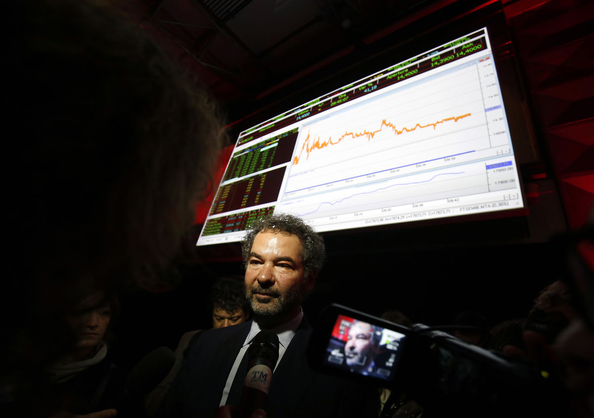 Moncler SpA Chairman Remo Ruffini speaks to journalists after a news conference to announce the company’s initial public offering inside the Borsa Italiana, Italy’s Stock Exchange in Milan.