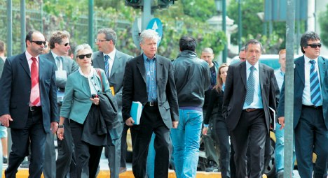 eccoli i 4 controllori europei….che passano al setaccio le finanze greche….oltre un folto stuolo di burocrati di Bruxelles….che tra poco prenderanno anche casa ad Atene!…e a settembre un’altra stretta alla cinta dei greci!