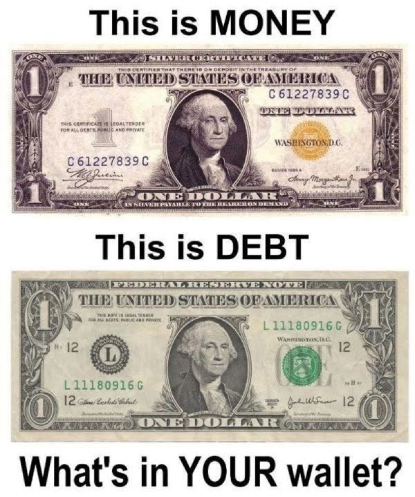 The bill on the top is based on the Gold Standard while the bill on the bottom is merely an illusion of value based on the magical powers of a Treasury Department printing press.