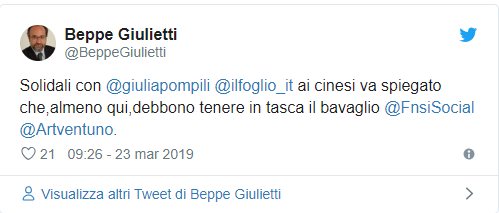 C’è invece una piccola significativa storia che invece non può passare sotto silenzio. Stiamo parlando di ciò che è successo a una giornalista del Foglio, la collega Giulia Pompili. Ieri era a Roma, al Quirinale, per seguire insieme a molti altri giornalisti italiani e stranieri la conferenza stampa del Presidente della Repubblica Sergio Mattarella e Xi Jinping, segretario generale del Partito Comunista e Presidente della Repubblica popolare cinese, nell’ambito dellle firme per un accordo commerciale col governo italiano.